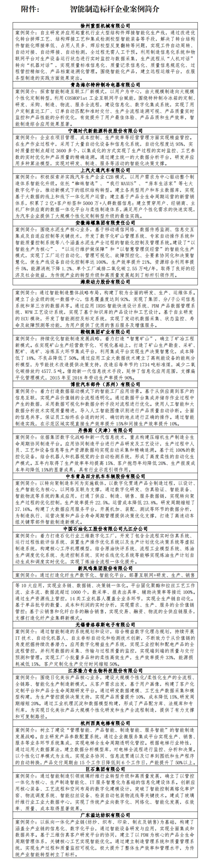 為進一步發揮智能制造標桿企業引領示范作用,工業和信息化部組織智能制造系統解決方案供應商聯盟(下稱“聯盟”)面向“2019年智能制造標桿企業”開展了案例征集和編制工作,在深度梳理、篩選和專家指導的基礎上遴選出17個典型案例,編制形成《智能制造標桿企業案例集》。案例來自汽車整車、家用電器、電池制造、石油化工、通用儀器儀表等多個行業領域,從企業基本情況、項目背景、實施路徑、成效總結、經驗復制推廣、建設體會、亮點及模式總結等不同方面進行了闡述,為不同行業、區域企業開展智能化改造提供有借鑒意義的成功經驗和模式。