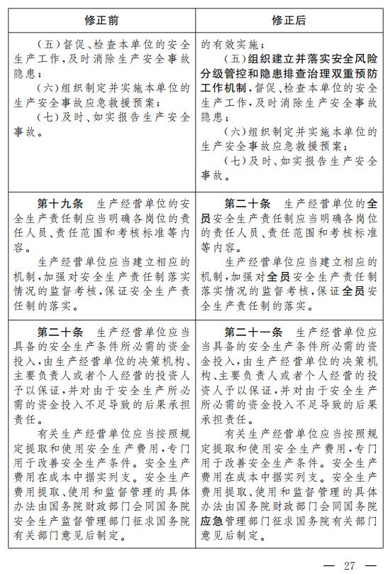《中華人民共和國安全生產法》根據本修正案作相應修改, 重新公布。