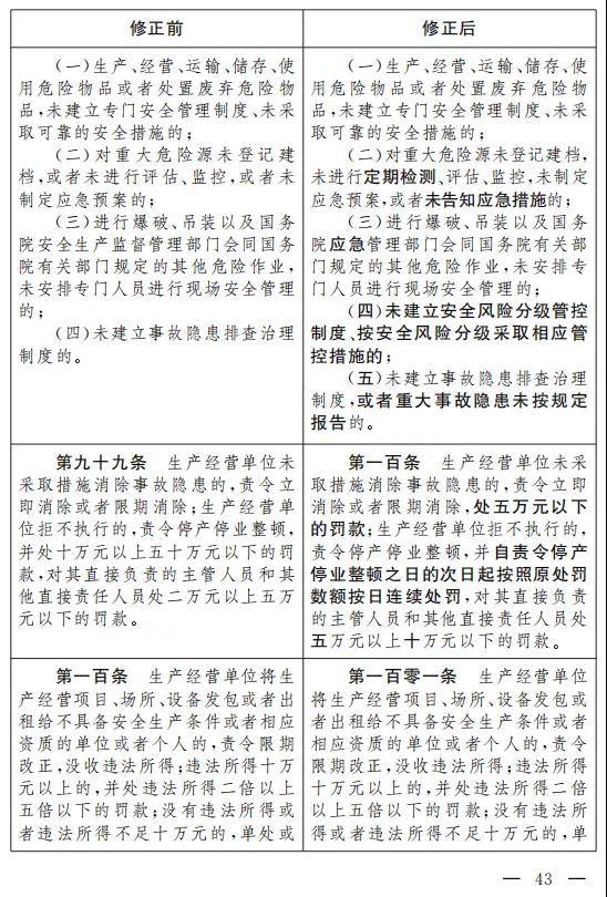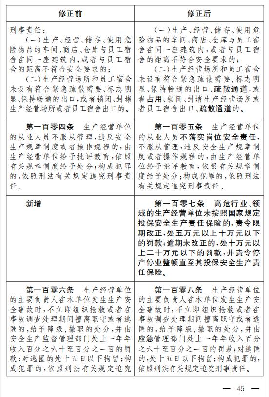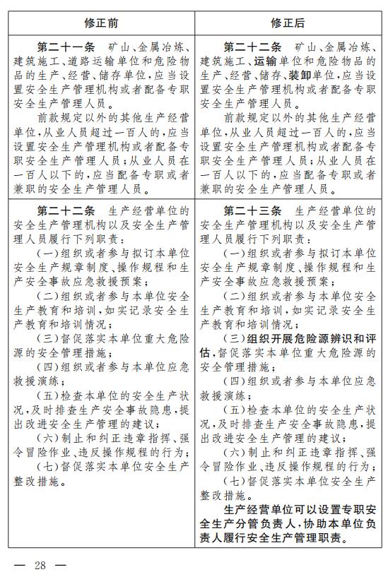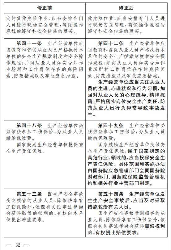 十二、將第四十一條改為第四十二條,增加一款,作為第二款:“生產經營單位應當關注從業人員的生理、心理狀況和行為習慣,加強對從業人員的心理疏導、精神慰藉,嚴格落實崗位安全生產責任,防范從業人員行為異常導致事故發生。”