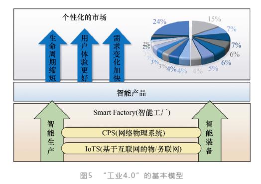 德國的“工業4.0”戰略提出具體概念和技術框架,如圖5所示。智能制造技術在我國制造企業轉型升級實踐中催生了大量的新模式、新方法。而這些新模式、新方法仍然在結合不斷涌現的新一代信息技術、智能裝備技術以及新理念快速演進。在這個演進過程中,確有亂花漸欲迷人眼的感覺。但深究這些紛繁復雜的技術和概念,他們都有一條共同發展的軌跡:智能裝備和智能生產(方式)。智能裝備包括智能化加工、物流和檢測等智能化、數字化設備,智能生產方式一般通過信息化系統承載和固化。他們成為智能制造新模式的兩根支柱,有人形象地稱為雙輪驅動,這與“工業4.0”提出的基本概念相符合。而將這兩根支柱有機地結合在一起的技術正是我們早已熟知的“兩化深度融合”,這種融合技術在“工業4.0”中體現為信息物理系統(CPS)、物/務聯網(IoTS)。而在中國,技術最新的演進則表現為“工業互聯網”。