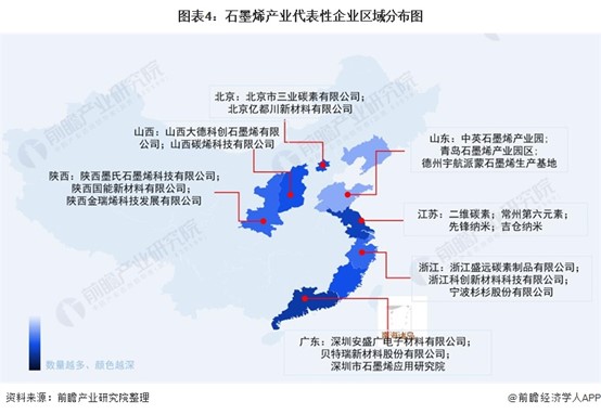 石墨烯產(chǎn)業(yè)區(qū)域熱力地圖:區(qū)域集中在東南沿海地區(qū)