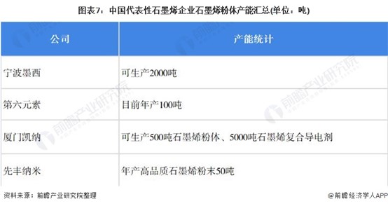 石墨烯代表性企業(yè)產(chǎn)能情況