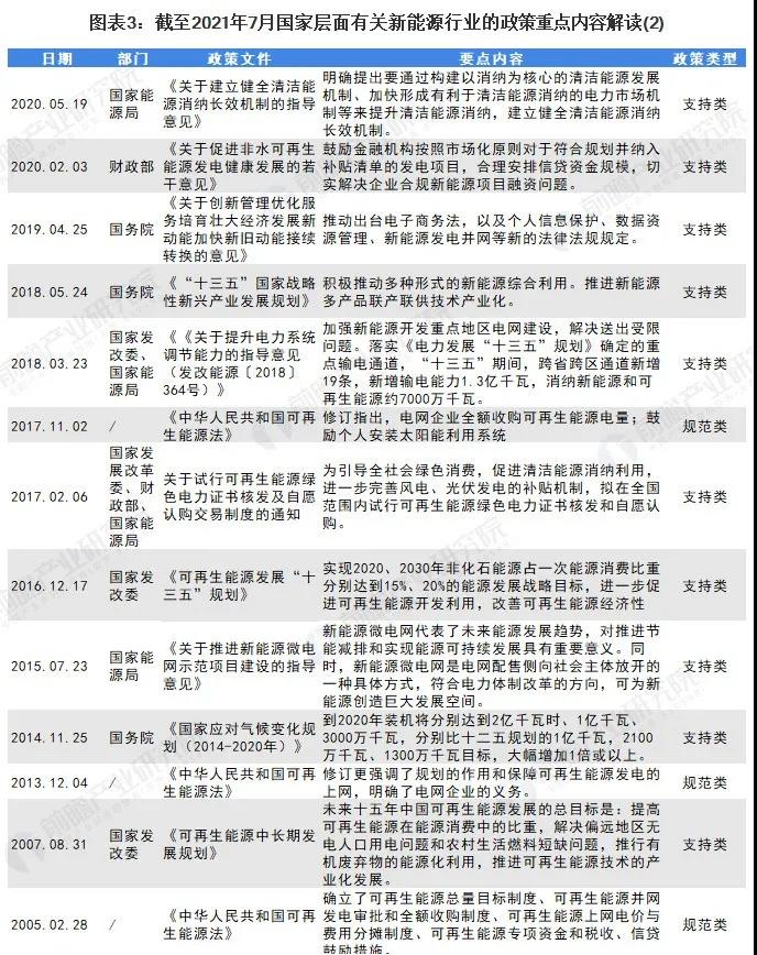 自2005年以來,國務院、國家發(fā)改委、國家能源局等多部門都陸續(xù)印發(fā)了支持、規(guī)范新能源行業(yè)的發(fā)展政策,內(nèi)容涉及新能源行業(yè)的發(fā)展技術路線、產(chǎn)地建設規(guī)范、安全運行規(guī)范、能源發(fā)展機制和標桿上網(wǎng)電價等內(nèi)容:
