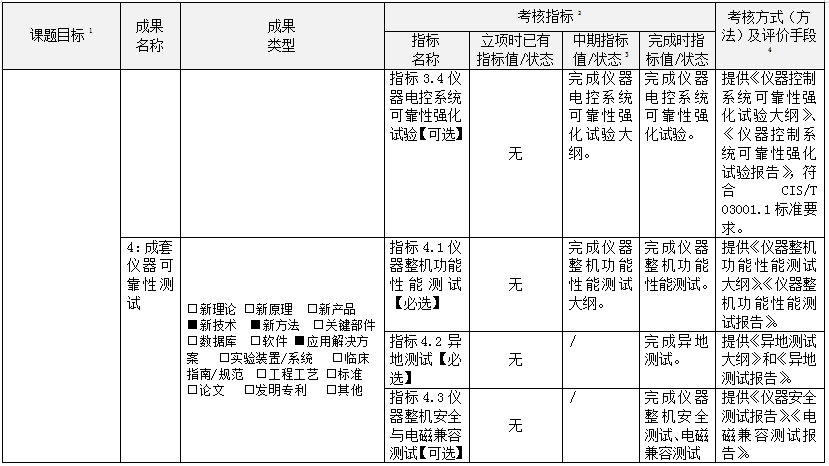 儀器專項(xiàng)整機(jī)及核心部件的可靠性典型指標(biāo)包含技術(shù)就緒度評(píng)估、質(zhì)量與可靠性工作方案、核心部件可靠性分析與測(cè)試、儀器軟系統(tǒng)質(zhì)量、成套儀器安全性測(cè)試、成套儀器環(huán)境適應(yīng)性試驗(yàn)、成套儀器可靠性測(cè)試、成套儀器異地測(cè)試、成套儀器可靠性指標(biāo)考核等,具體解析如下: