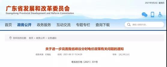 2021年8月31日,廣東省發(fā)展和改革委員會發(fā)布《關于進一步完善我省峰谷分時電價亨策有關問題的通知》,在2021年7月29日發(fā)改委正式發(fā)布《關于進一步完善分時電價機制的通知(發(fā)改價格〔2021〕1093號)》之后,率先吹響了省級電力市場電價政策改革的號角。