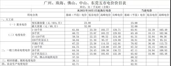 一、廣州、珠海、佛山、中山、東莞等5市電價變化情況