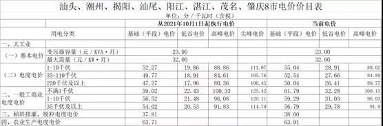 四、汕頭、潮州、揭陽、汕尾、陽江、湛江、茂名、肇慶等8市電價變化情況