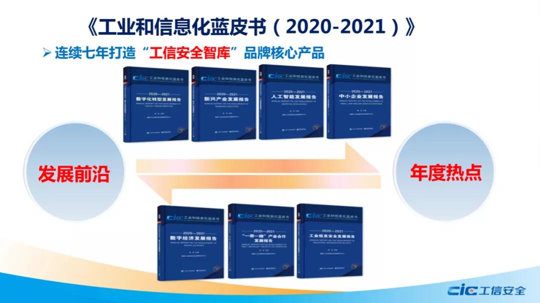 《工業(yè)和信息化藍(lán)皮書(shū)》是國(guó)家工業(yè)信息安全發(fā)展研究中心連續(xù)第七年打造的“工信安全智庫(kù)”品牌核心產(chǎn)品,本年度藍(lán)皮書(shū)聚焦發(fā)展前沿和年度熱點(diǎn),共推出《新興產(chǎn)業(yè)發(fā)展報(bào)告》《數(shù)字經(jīng)濟(jì)發(fā)展報(bào)告》《工業(yè)信息安全發(fā)展報(bào)告》《人工智能發(fā)展報(bào)告》《數(shù)字化轉(zhuǎn)型發(fā)展報(bào)告》《“一帶一路”產(chǎn)業(yè)合作發(fā)展報(bào)告》《中小企業(yè)發(fā)展報(bào)告》七大專(zhuān)題報(bào)告。