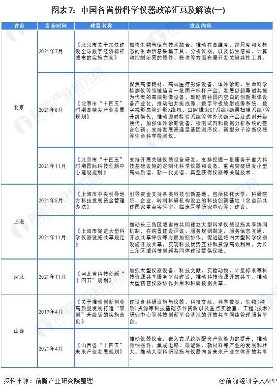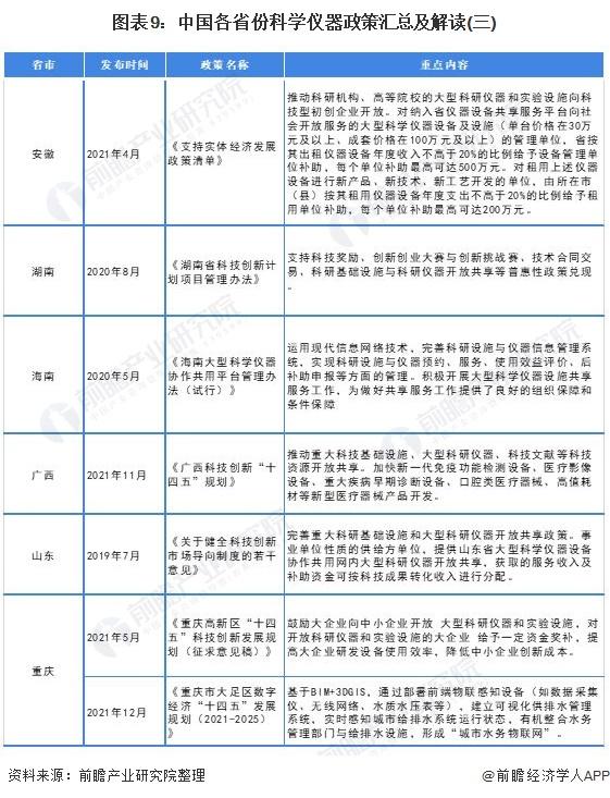 科學(xué)儀器各省市層面的政策匯總及解讀