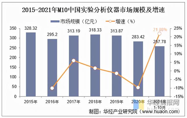 2015-2021年M10中國實(shí)驗(yàn)分析儀器市場規(guī)模及增速
