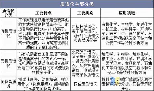 質(zhì)譜儀按應(yīng)用范圍分為同位素質(zhì)譜儀、無(wú)機(jī)質(zhì)譜儀和有機(jī)質(zhì)譜儀。按分辨本領(lǐng)分為高分辨、中分辨和低分辨質(zhì)譜儀;按工作原理分為靜態(tài)儀器和動(dòng)態(tài)儀器。