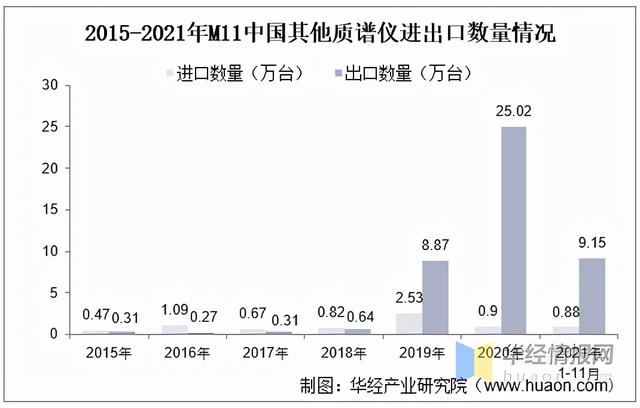 2015-2021年M11中國(guó)其他質(zhì)譜儀進(jìn)出口數(shù)量情況