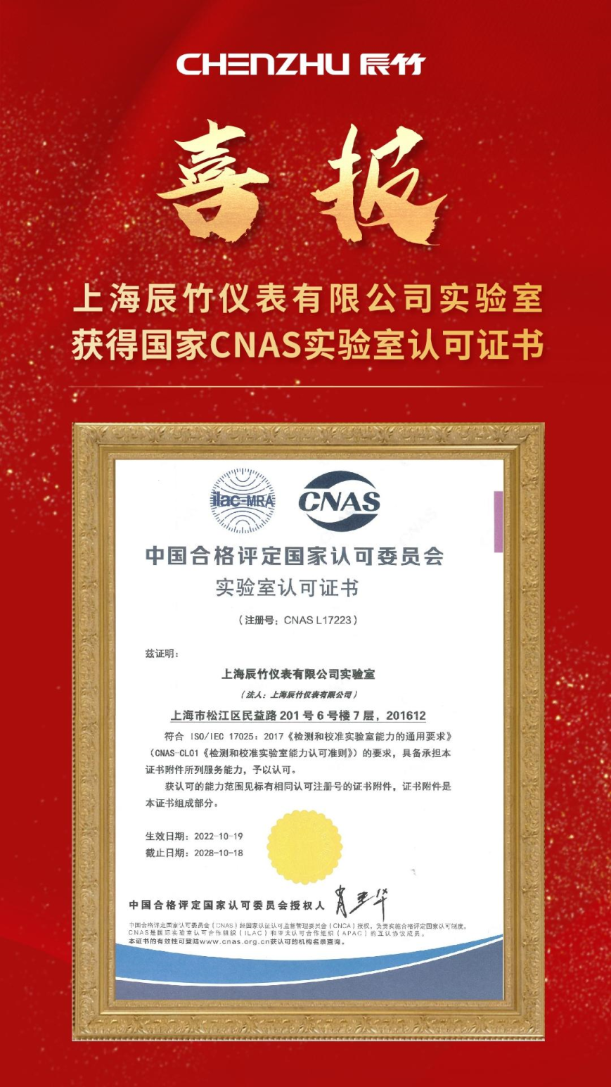 近日,上海辰竹儀表有限公司(以下簡稱“辰竹”)實驗室由中國合格評定國家認可委員會批準,正式獲得CNAS實驗室認可證書。