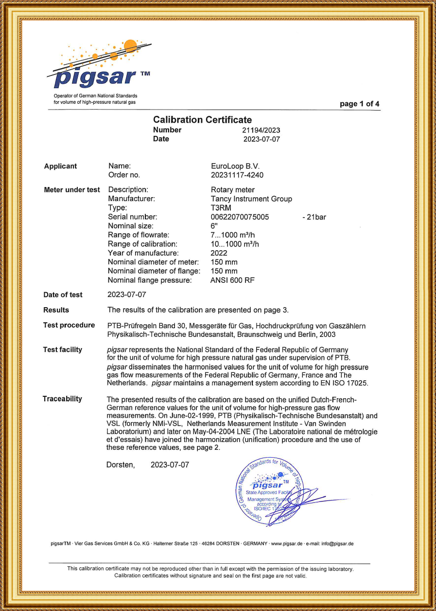 近日,金卡智能旗下天信儀表T3RM型氣體腰輪流量計通過了在德國聯(lián)邦物理技術(shù)研究院(PTB)旗下Pigsar的實流測試(精準度達到0.2級),成為國內(nèi)首個獲得該認證的三轉(zhuǎn)子高壓腰輪流量計。
