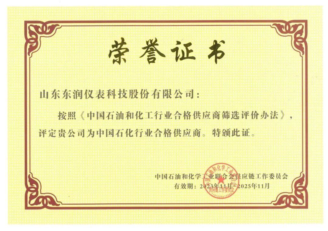 近日,中國石油和化學工業聯合會供應鏈工作委員會發布了第33批中國石油和化工行業合格供應商、可信服務商名單,山東東潤儀表科技股份有限公司作為唯一一家通用儀器儀表類上榜。