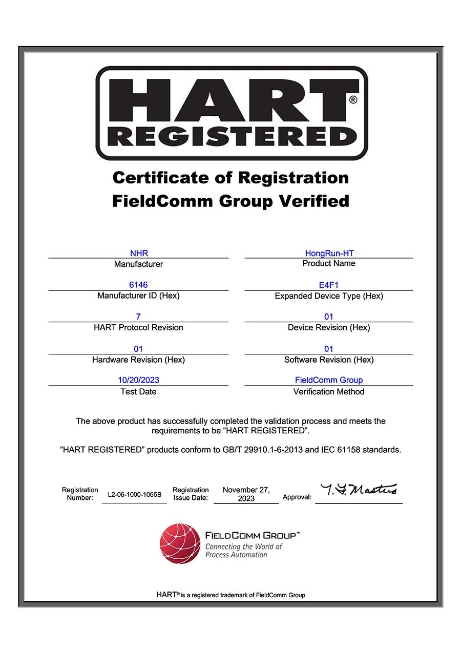 近日,虹潤(rùn)公司溫度變送器通過“美國(guó)HART基金會(huì)” 產(chǎn)品認(rèn)證和FDI包文件的權(quán)威認(rèn)證,成為國(guó)內(nèi)首家通過FDI認(rèn)證的企業(yè)。這是虹潤(rùn)智能儀表發(fā)展歷程中取得的又一項(xiàng)重要認(rèn)證,表明該產(chǎn)品在協(xié)議技術(shù)認(rèn)證等方面得到了國(guó)際權(quán)威認(rèn)可。HART認(rèn)證符合GB/T 29910.1-6-2013及IEC 61158的規(guī)定,目前可支持HART 7.9版本協(xié)議。