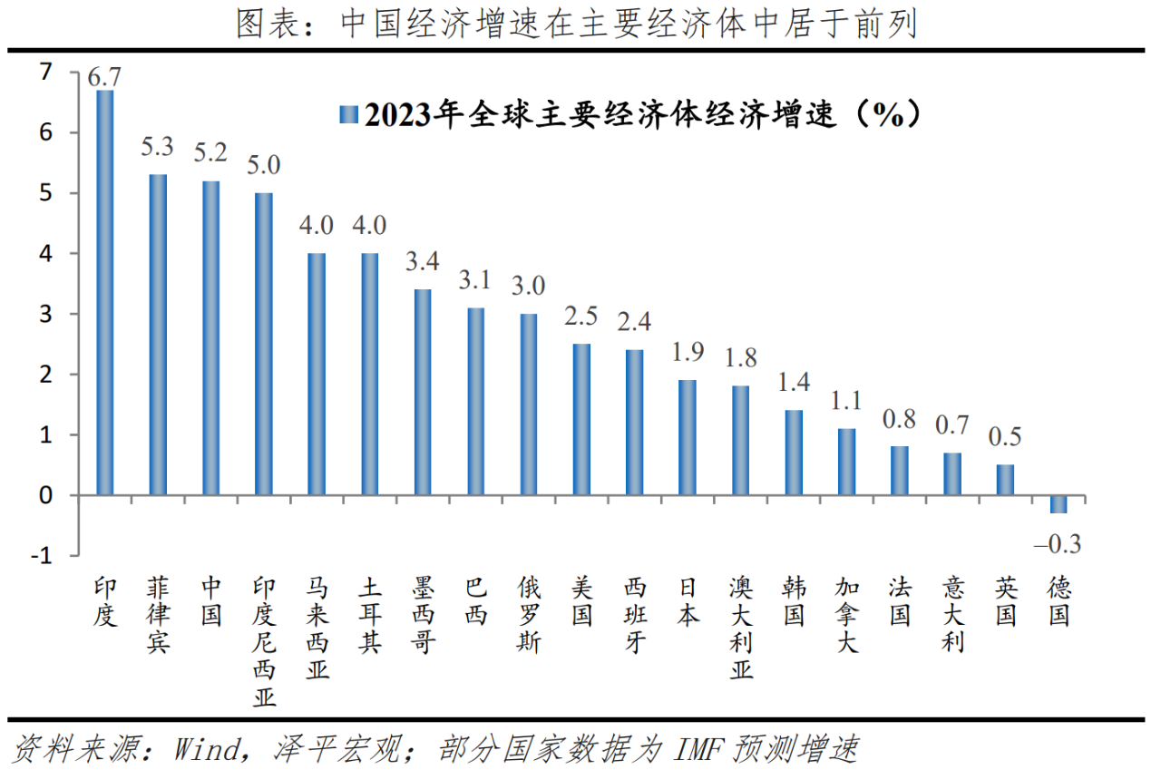 中國是全球經濟增長的最大貢獻者,約為32%,遠高于印度的15%和美國的11%。按照可比價計算,2023年經濟增量超過6萬億元,相當于一個中等經濟體一年的經濟總量。根據IMF研究,我國經濟增長的溢出效應明顯,經濟增長1%,將帶動其他經濟體產出水平提高0.3%。