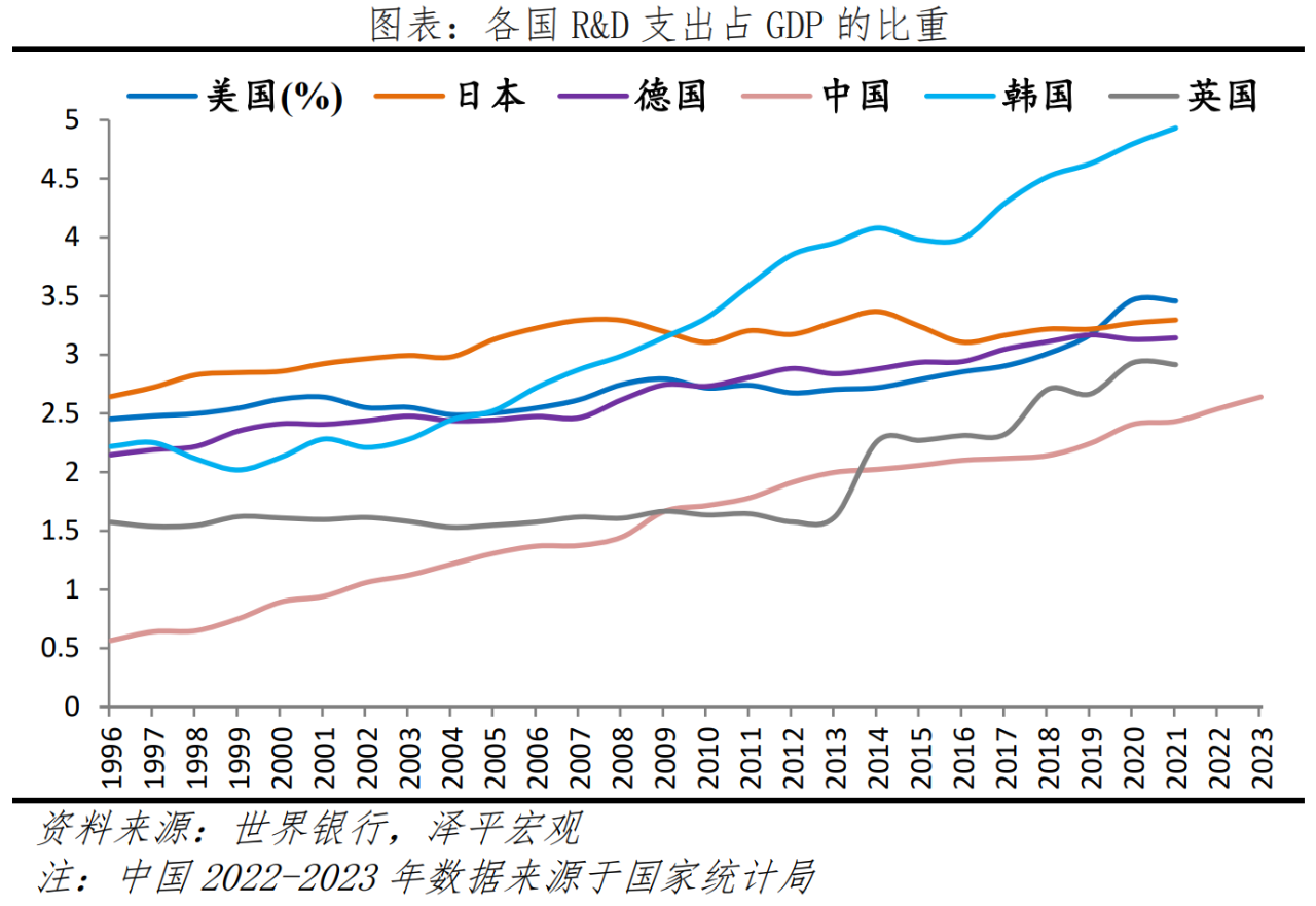 科技創新研發投入加大,深耕自主研發,在部分高科技領域與發達國家的差距逐漸縮小。2023年我國研發支出3.3萬億元,占GDP的比重為2.64%,而2000年這一比重僅為1.0%。截至2018年底,國家科技成果轉化引導基金累計設立21支子基金,資金總規模達到313億元。我國成為世界上首個國內有效發明專利數量突破400萬件的國家,高價值發明專利占比超過四成。