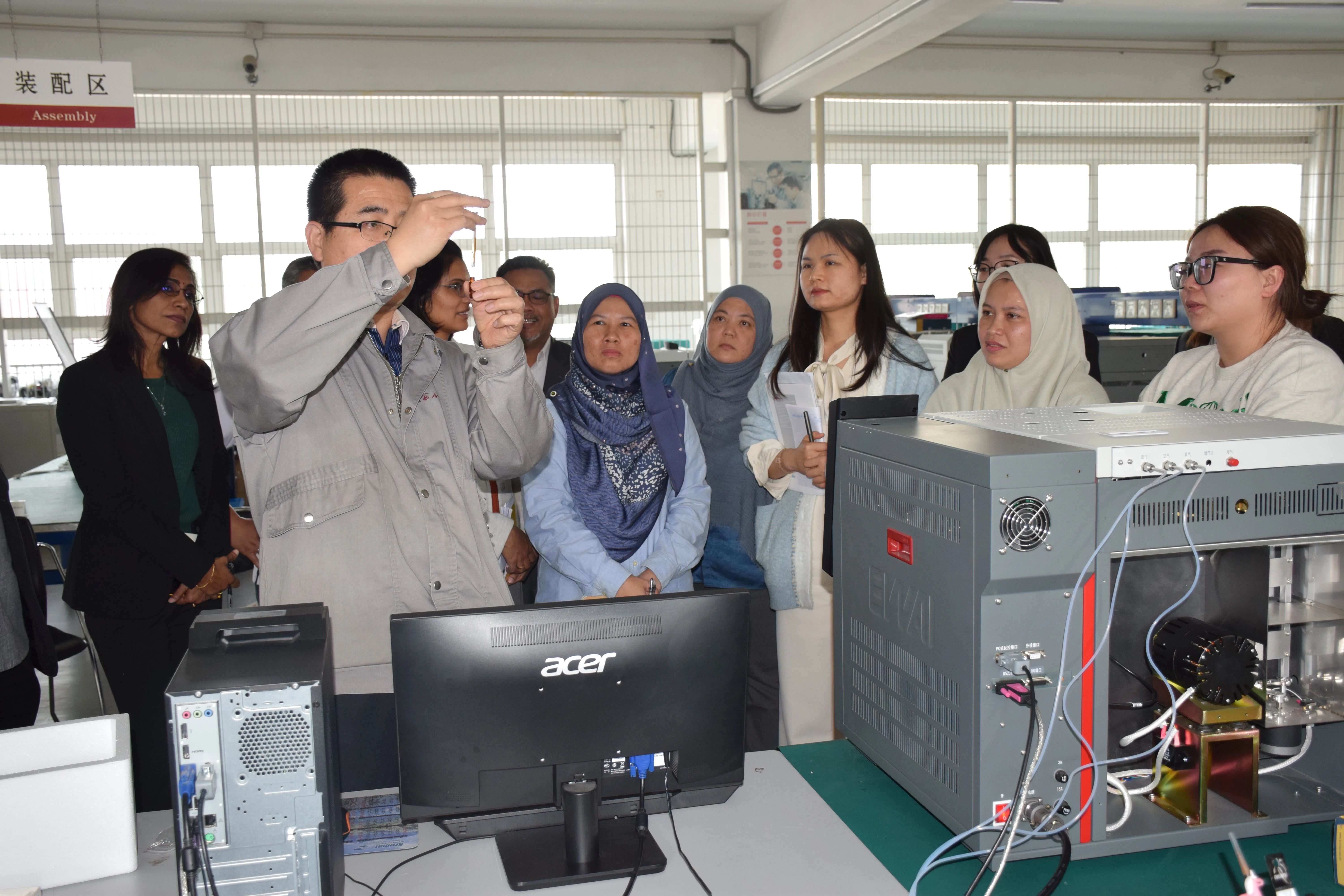 隨后,馬來(lái)西亞環(huán)保部代表團(tuán)來(lái)到了北京東西分析儀器有限公司的儀器設(shè)備生產(chǎn)線。代表團(tuán)成員們?cè)敿?xì)了解了儀器性能,親身感受了我國(guó)環(huán)保儀器的高科技。在參觀過(guò)程中,代表團(tuán)還與公司技術(shù)人員就儀器性能、應(yīng)用場(chǎng)景等問(wèn)題進(jìn)行了交流。
