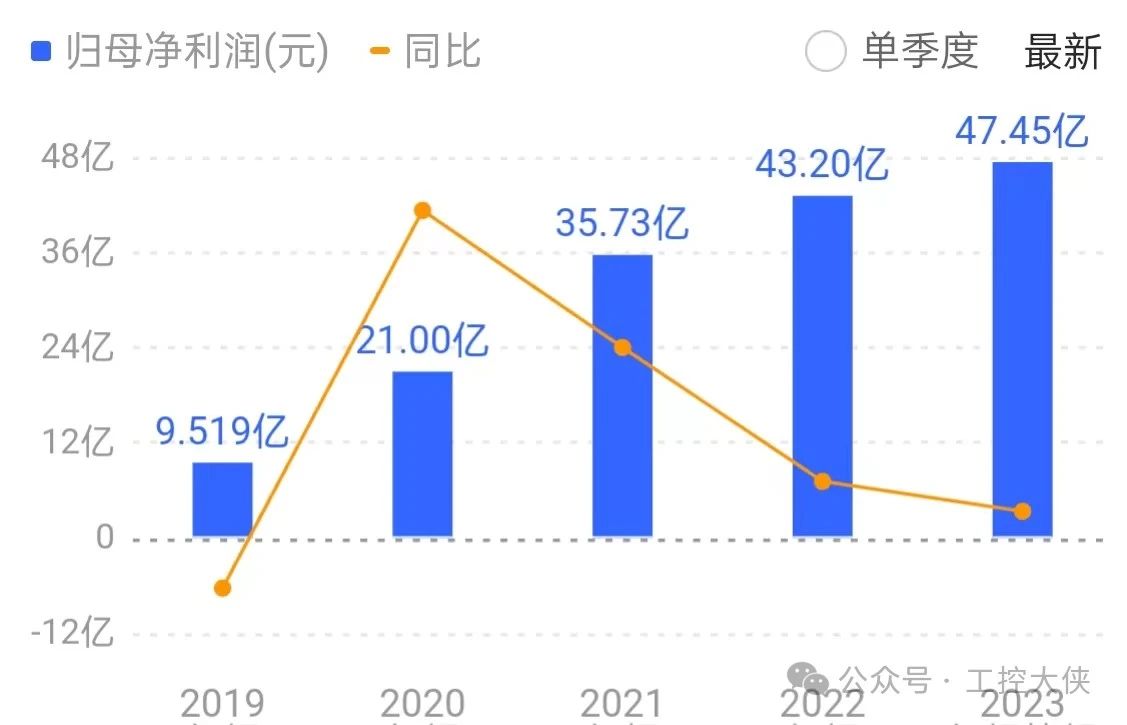 匯川,23財年凈利潤47億元,研發投入20億元。