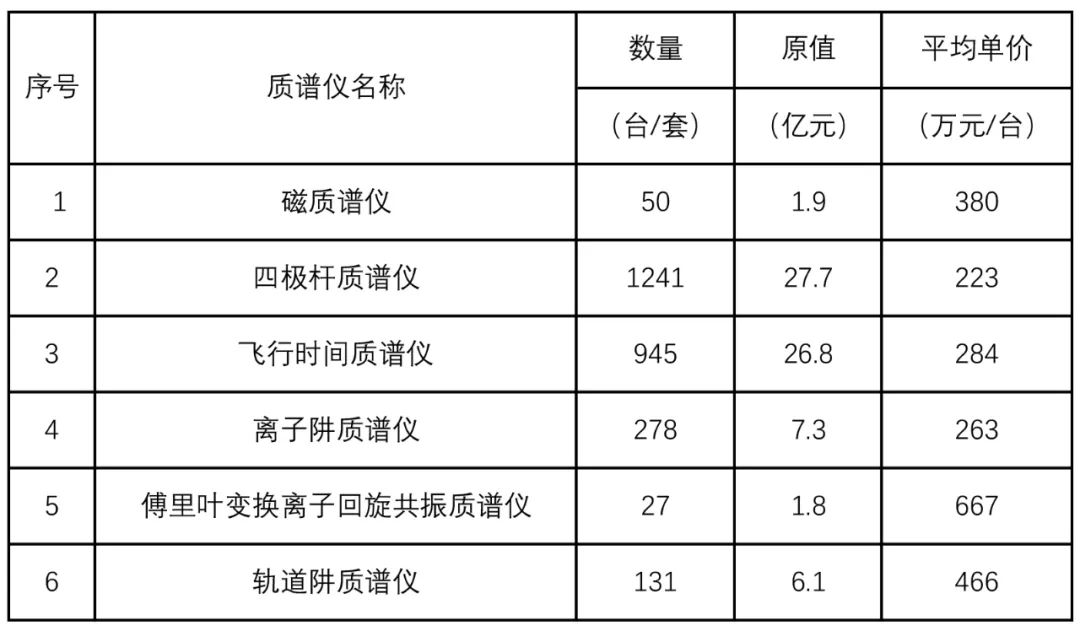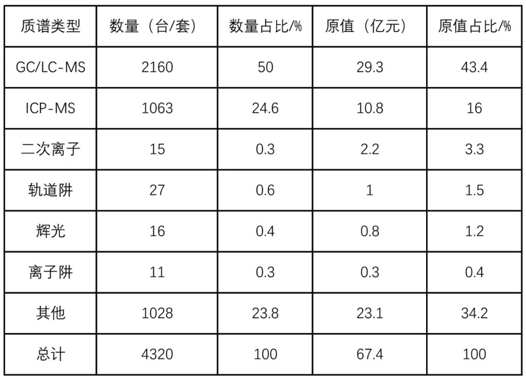 表6 2021年海關(guān)進(jìn)口不同類(lèi)型質(zhì)譜儀器數(shù)量