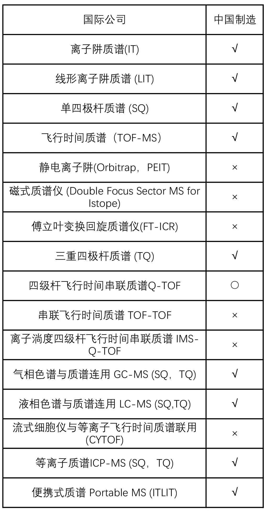 表7 國(guó)內(nèi)外質(zhì)譜儀器產(chǎn)品類(lèi)型對(duì)比