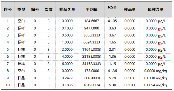 稱取0.5g試樣,精確至0.0001g,置于50mL燒杯中,加入適量水溶解,完全轉移至50mL容量瓶中,加入5mL硫脲-抗壞血酸混合溶液,加入5mL鹽酸溶液,用水稀釋至刻度,搖勻,室溫放置30min,同時制備空白溶液,待上機測試。
