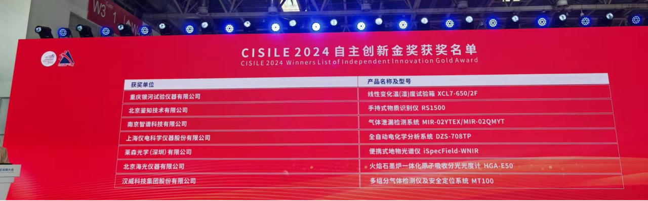 此外,本屆展會的重頭戲之一,是每兩年一次的“自主創新金獎”頒獎盛典。經過嚴格的評選和審核,26款在技術創新、產品應用和市場推廣等方面表現出色的國產科學儀器產品脫穎而出。銀河儀器最新研制產品——線性變化溫(濕)度試驗箱XCL7-650-2F憑借技術創新經過層層篩選后獲此殊榮,展現了銀河儀器的科研實力和創新活力。