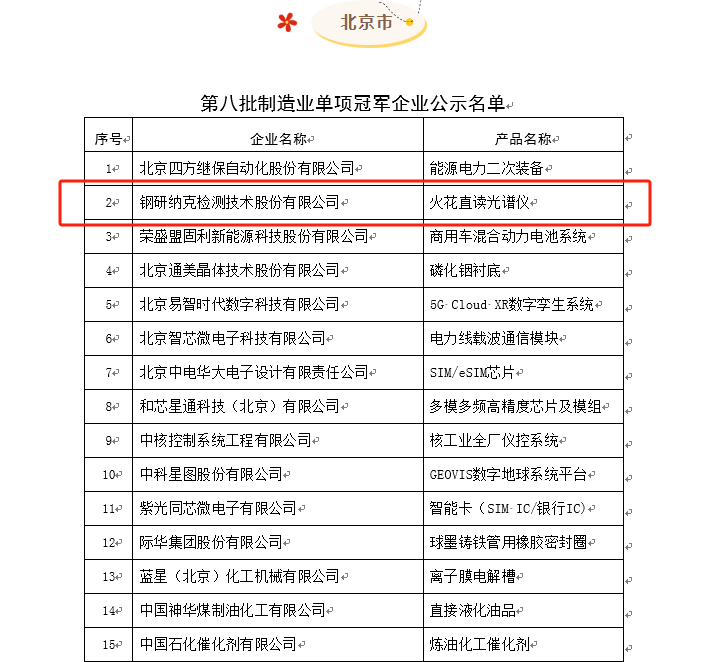 202434日,各省市工信廳(局)陸續披露第八批制造業單項冠軍企業和通過復核的第二批、第五批制造業單項冠軍企業名單,令人振奮的消息傳來,鋼研納克分析儀器—火花直讀光譜儀憑借卓越的產品質量和優秀的市場表現,成功榮獲第八批制造業單項冠軍產品稱號,成為行業內佼佼者。