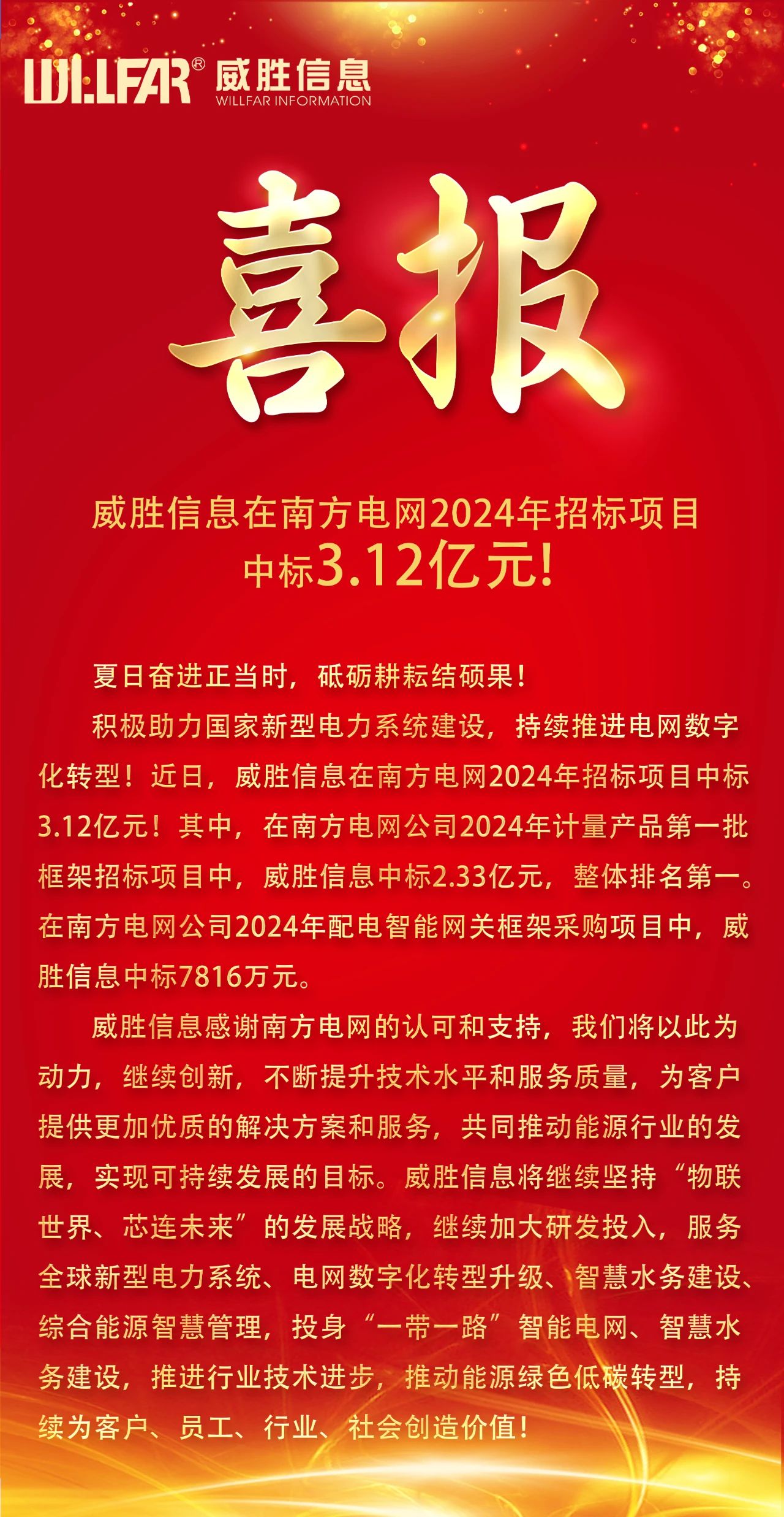 3.12億元!威勝信息中標(biāo)南方電網(wǎng)2024年招標(biāo)項