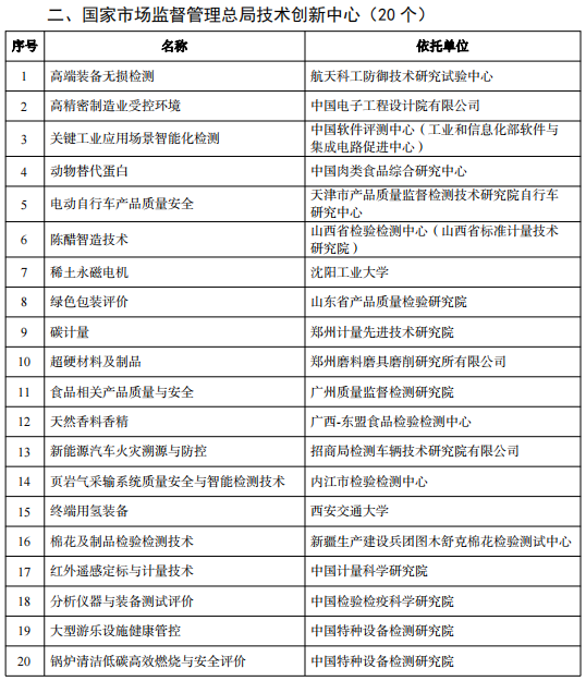 依據(jù)《國(guó)家市場(chǎng)監(jiān)管重點(diǎn)實(shí)驗(yàn)室管理暫行辦法》《國(guó)家市場(chǎng)監(jiān)管技術(shù)創(chuàng)新中心管理暫行辦法》要求,市場(chǎng)監(jiān)管總局科技和財(cái)務(wù)司組織完成了2023年度總局重點(diǎn)實(shí)驗(yàn)室和技術(shù)創(chuàng)新中心申報(bào)項(xiàng)目的評(píng)審工作。經(jīng)組織申報(bào)、形式審查、集中評(píng)審、現(xiàn)場(chǎng)核查和綜合論證等程序,擬批準(zhǔn)建設(shè)重點(diǎn)實(shí)驗(yàn)室40個(gè)、技術(shù)創(chuàng)新中心20個(gè),現(xiàn)予以公示。