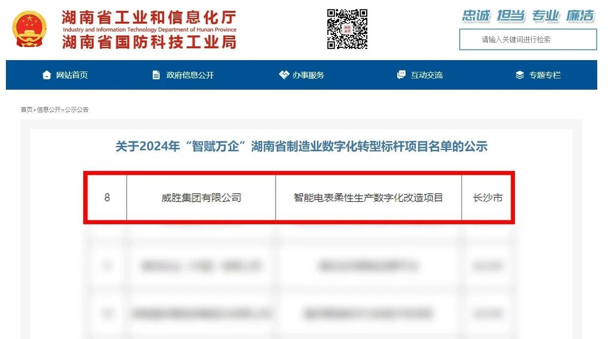 近日,湖南省工信廳公布2024年“智賦萬企”湖南省制造業數字化轉型標桿項目名單,共計遴選了162個湖南省制造業數字化轉型標桿項目,威勝集團有限公司的“智能電表柔性生產數字化改造項目”成功上榜。