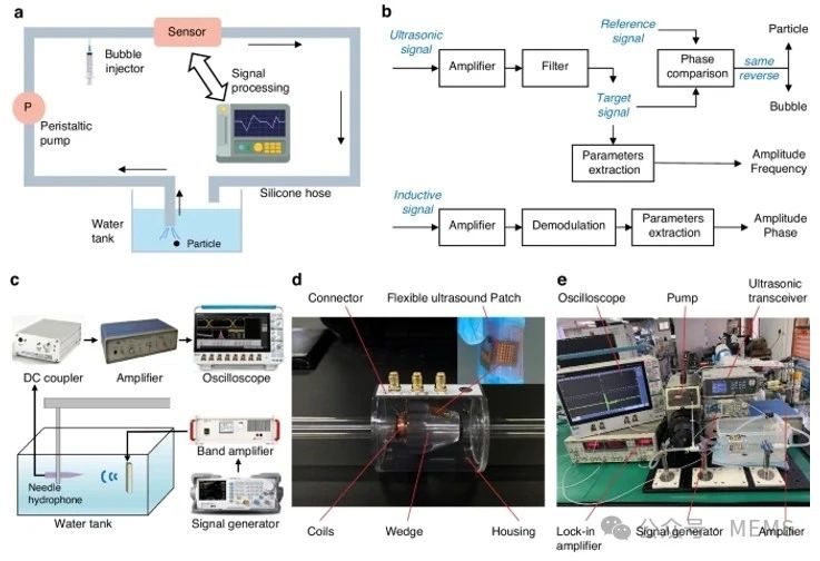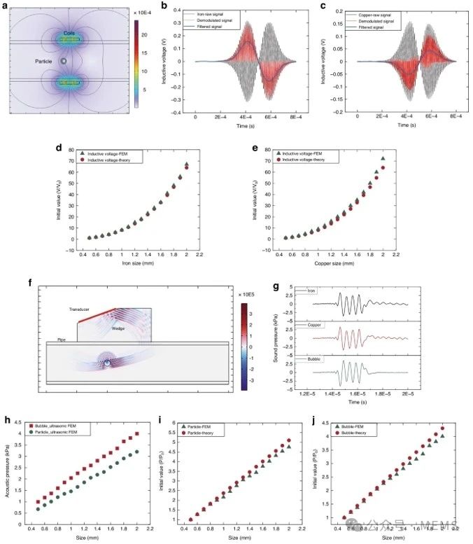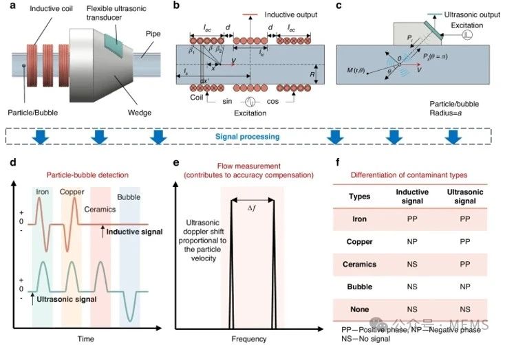 該方法在測量流速的同時能夠區(qū)分鐵磁性金屬顆粒、非鐵磁性金屬顆粒、非金屬顆粒和氣泡。微機械加工可以顯著減小傳感器的尺寸,而柔性襯底使安裝更加方便,增強聚焦聲場,從而提高檢測能力。這項研究成果已于近期發(fā)表在Microsystems & Nanoengineering期刊上。