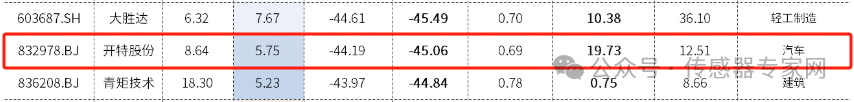 細分來看,國產汽車傳感器企業(yè)開特股份收盤報漲10.07%,領銜中國A股傳感器股票,市值17.05億元。