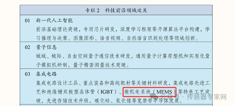 2021年3月,“十四五”規(guī)劃發(fā)布,將智能傳感器重要制造技術——MEMS(微機電系統)工藝,寫入【科技前沿領域攻關】技術項目中。