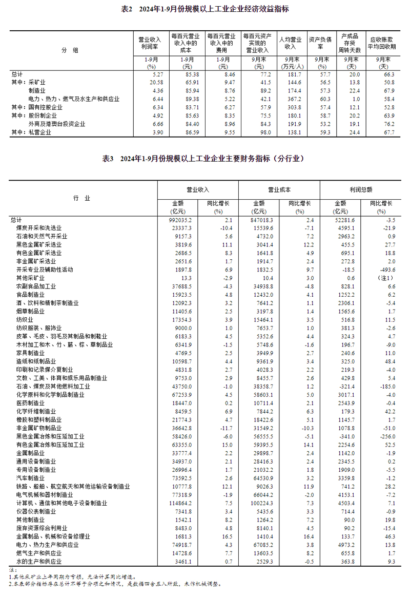 2024年1—9月份全國(guó)規(guī)模以上工業(yè)企業(yè)利潤(rùn)下降3