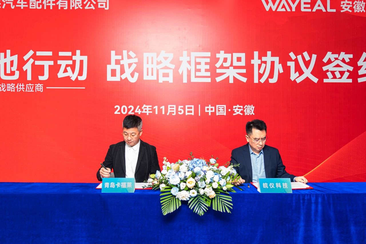 11月5日上午,安徽皖儀科技股份有限公司(以下簡稱“皖儀科技”)與青島卡福萊汽車配件有限公司(以下簡稱“青島卡福萊”)在皖儀科技總部正式簽署基地行動戰(zhàn)略框架協(xié)議。雙方圍繞汽車配件行業(yè)所面臨的新領(lǐng)域、新機遇展開深入交流,共同探索汽車配件行業(yè)發(fā)展新篇章。