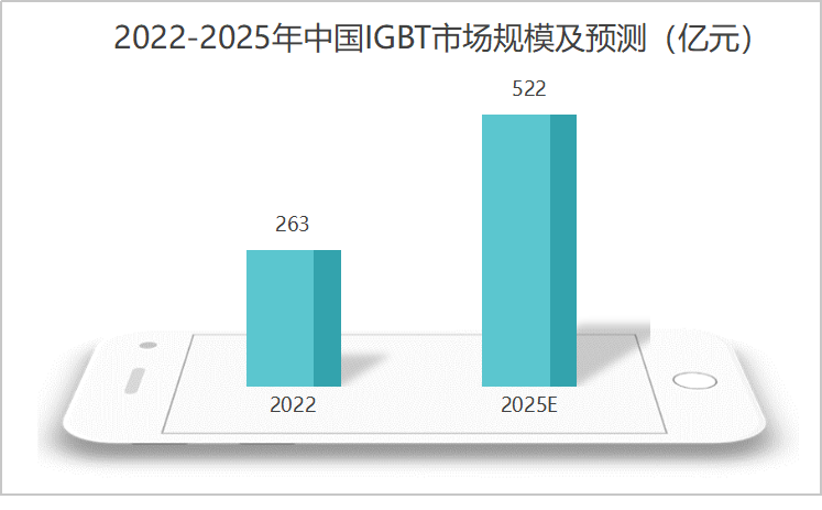 隨著國產替代的加速,預計2022到2025年中國IGBT市場規模有望從263億增長到522億,年復合增長率超過25%。