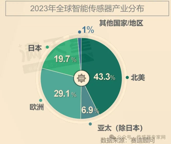 據(jù)工信部下屬產業(yè)研究機構賽迪顧問數(shù)據(jù)顯示,以美國為主導的北美地區(qū)占據(jù)全球智能傳感器產業(yè)產能的43.3%,是占比最高的地區(qū),其次歐洲占比29.1%,日本占比19.7%,亞太地區(qū)(除日本)占比6.9%,其他國家/地區(qū)占比1%。在產能方面,歐美地區(qū)在智能傳感器領域的產能占據(jù)全球主要地位。(詳細數(shù)據(jù)參看《3644.7億元,中國是全球傳感器“小”國!發(fā)展刻不容緩!》)