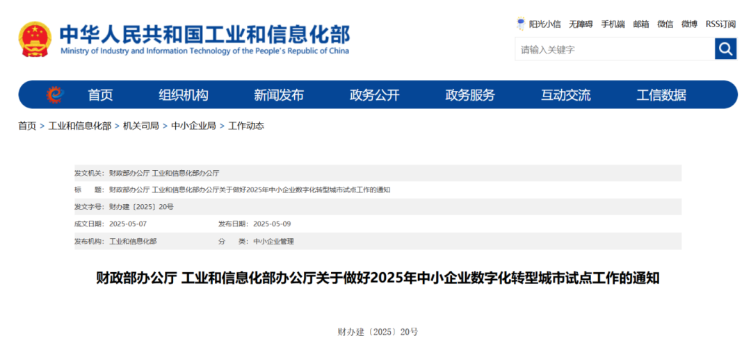 摘要:5月12日消息,財政部、工業和信息化部近日聯合印發通知,部署做好 2025年中小企業數字化轉型城市試點工作。