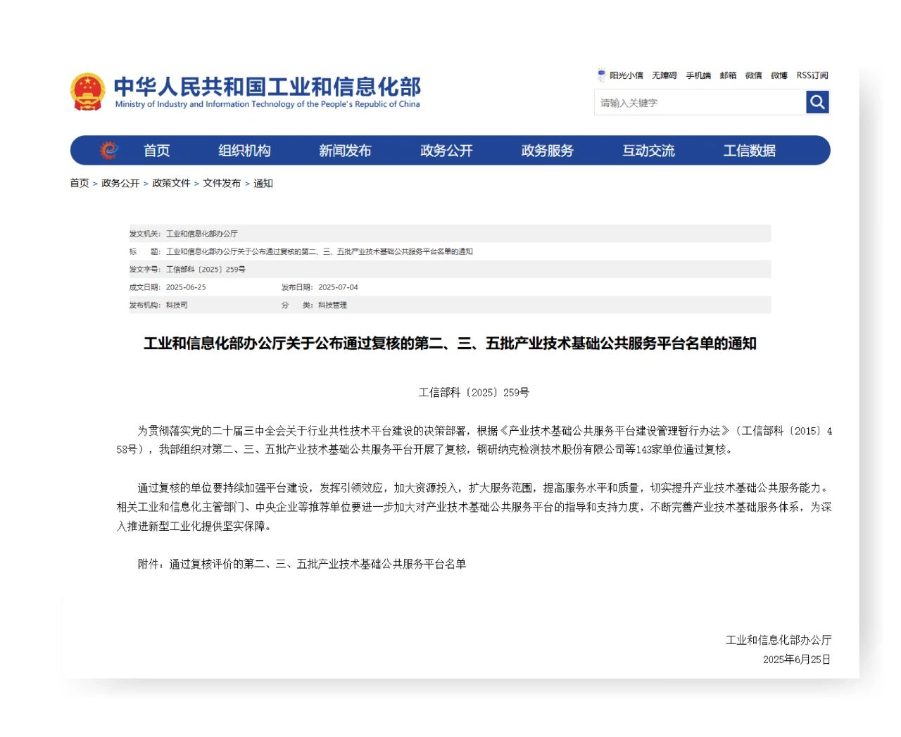 近期,國家工業和信息化部正式對外公布了第二、三、五批產業技術基礎公共服務平臺的復核通過名單。鋼研納克檢測技術股份有限公司憑借在工業(特殊鋼)產品質量控制與技術評價領域的深厚積累和突出貢獻,成功通過復核,再次彰顯鋼研納克作為國家級技術支撐平臺的領先地位。