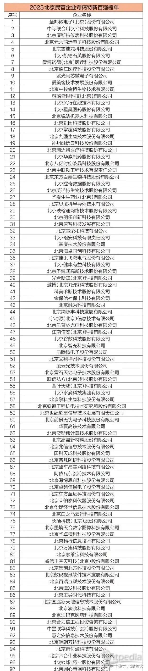 2025北京民營企業(yè)專精特新百強(qiáng)榜以企業(yè)年度經(jīng)營情況、研發(fā)創(chuàng)新能力、產(chǎn)業(yè)發(fā)展定位等為核心指標(biāo),綜合考量企業(yè)依法合規(guī)經(jīng)營、誠實(shí)守信等方面情況,根據(jù)核心指標(biāo)和輔助指標(biāo)的量化賦值確定入圍企業(yè)。