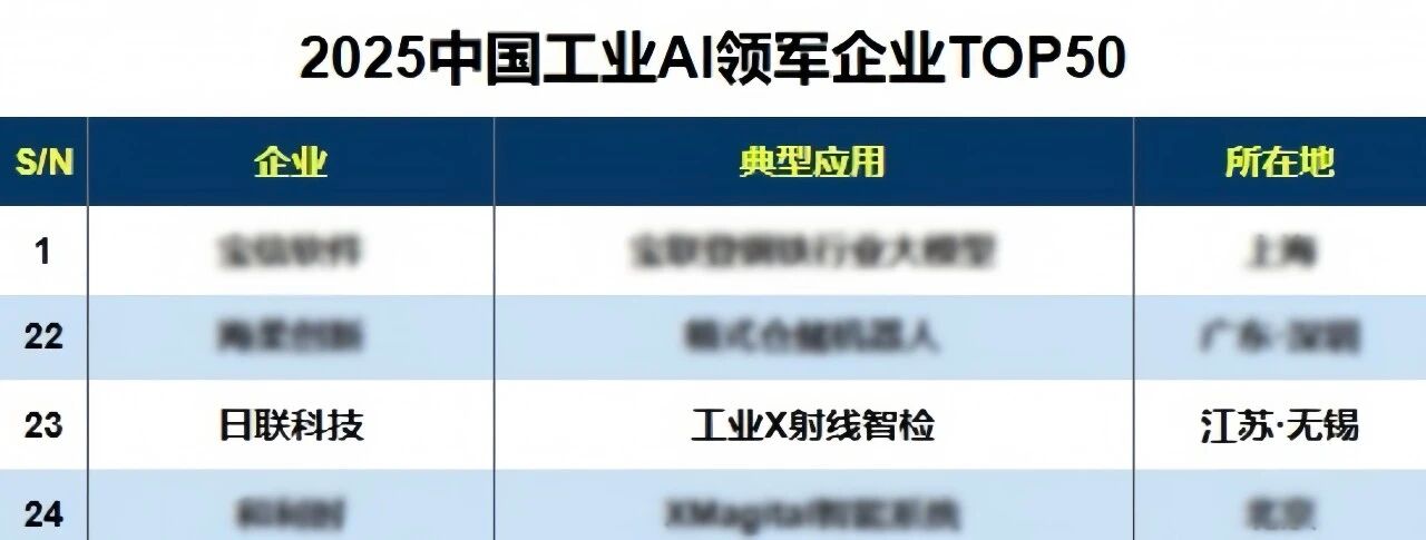 近日,由中國科學(xué)院主管、科學(xué)出版社主辦的商業(yè)期刊《互聯(lián)網(wǎng)周刊》(CIW)聯(lián)合德本咨詢(DBC)發(fā)布了《2025中國工業(yè)AI領(lǐng)軍企業(yè)TOP50》榜單,日聯(lián)科技成功入選。
