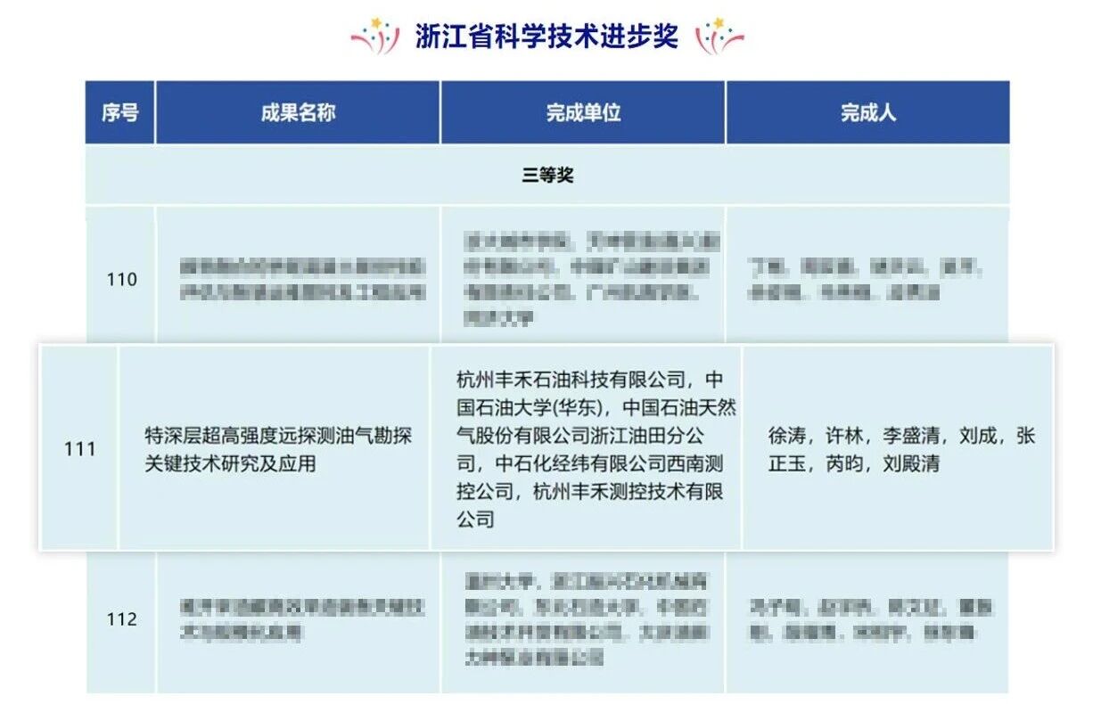 2月9日,浙江省“全省建設一流創新生態打造最具競爭力營商環境大會”在杭州舉行。由神開旗下控股子公司杭州豐禾石油科技有限公司(以下簡稱“神開豐禾”)牽頭,聯合中國石油大學(華東)、中國石油天然氣股份有限公司浙江油田分公司、中石化經緯有限公司西南測控公司以及杭州豐禾測控技術有限公司共同完成的“特深層超高強度遠探測油氣勘探關鍵技術研究及應用”項目,榮獲浙江省科學技術進步獎-三等獎。
