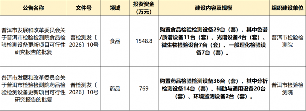 預算超2317萬元,普洱市擬更新65臺(套)檢驗檢