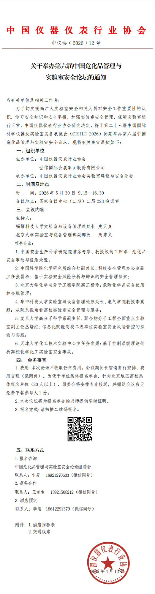 關于舉辦第六屆中國危化品管理與實驗室安全論壇的通知