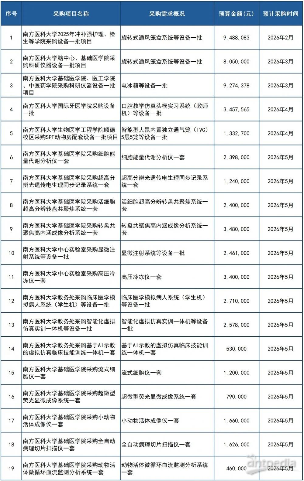 據(jù)廣東省政府采購網(wǎng)消息,為進一步規(guī)范政府采購行為,提高采購透明度,保障供應(yīng)商合法權(quán)益,根據(jù)《財政部關(guān)于開展政府采購意向公開工作的通知》(財庫〔2020〕10號)等有關(guān)規(guī)定,廣東省教育廳近日公布了關(guān)于南方醫(yī)科大學2026年02月至2026年12月的政府采購內(nèi)容,聚焦教學科研設(shè)備升級,全力支撐學校人才培養(yǎng)與科研創(chuàng)新工作。